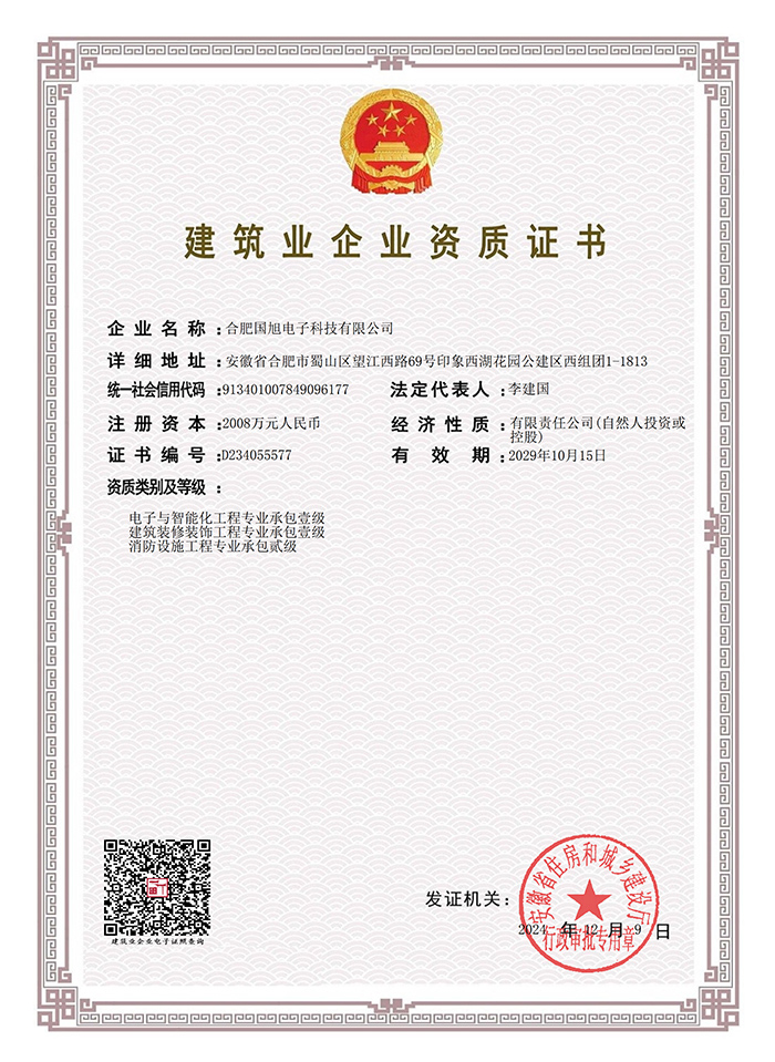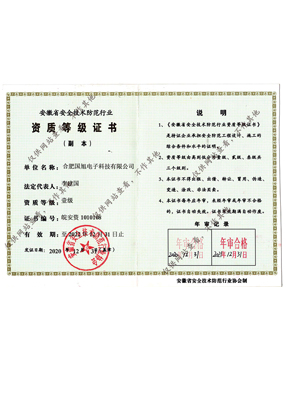 公司現(xiàn)已獲得承裝(修、試)電力設(shè)施許可證、電子與智能化工程專業(yè)承包壹級資質(zhì)、建筑裝修裝飾工程專業(yè)承包壹級資質(zhì)、消防設(shè)施工程專業(yè)承包貳級、安全技術(shù)防范行業(yè)壹級資質(zhì)、雷電防護裝置檢測資質(zhì)證乙級資質(zhì)、安全生產(chǎn)許可證、通過ISO9001:2015質(zhì)量管理體系認(rèn)證、ISO14001:2015環(huán)境管理體系認(rèn)證、OHSAS18001:2007職業(yè)健康安全管理體系認(rèn)證等榮譽。我們還將進一步努力,爭取贏得更多的榮譽。
