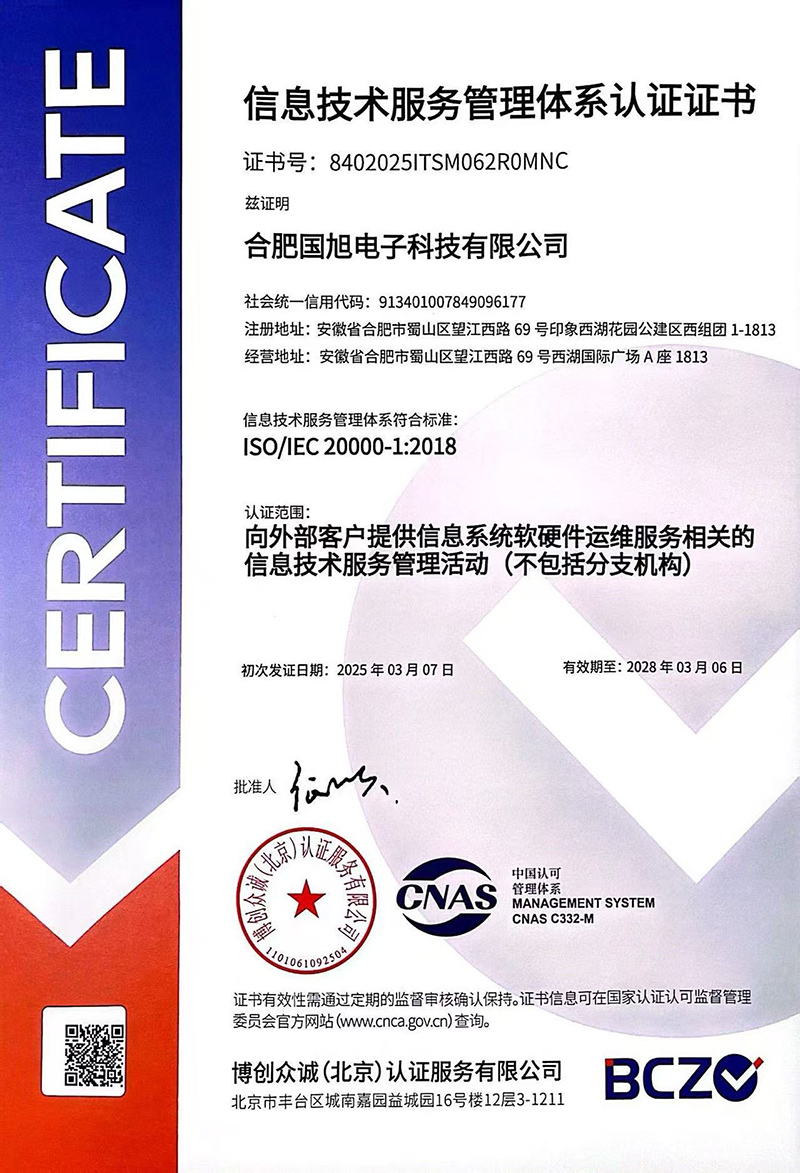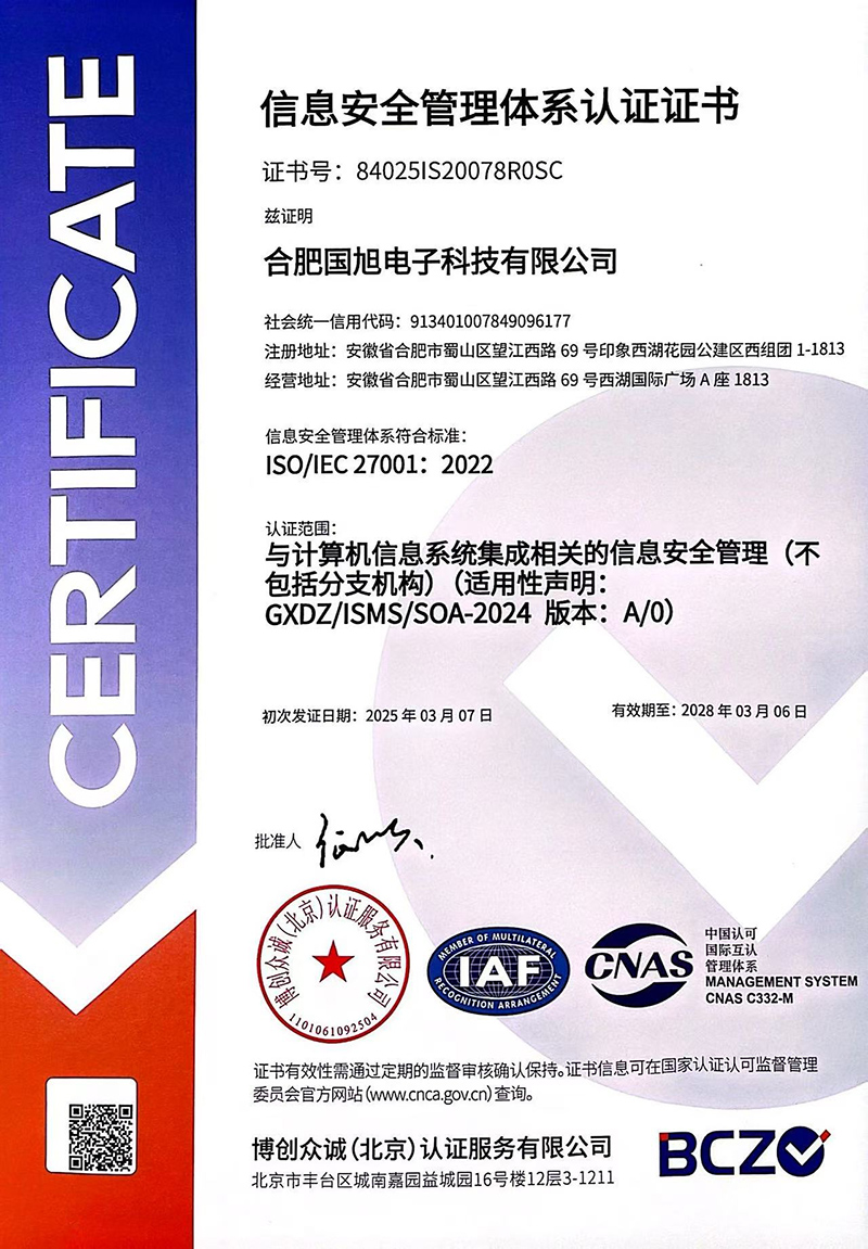 合肥國旭電子科技有限公司創(chuàng)立于2006年,總注冊資本2008萬。公司總部地址位于安徽IT主流商圈核心,合肥市蜀山區(qū)望江西路與肥西路交口西湖國際廣場。 公司是專業(yè)從事智能防雷檢測系統(tǒng)、智能化工程設(shè)計與施工工程、防雷設(shè)計施工工程、數(shù)據(jù)中心機房、消防工程、網(wǎng)絡(luò)監(jiān)控安全技術(shù)防范工程、及智能變電站安全預(yù)警系統(tǒng)。